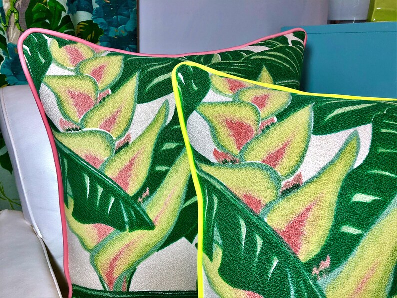 Hawaiian Heliconia Barkcloth Banana Leaves Pillow Vintage Etsy