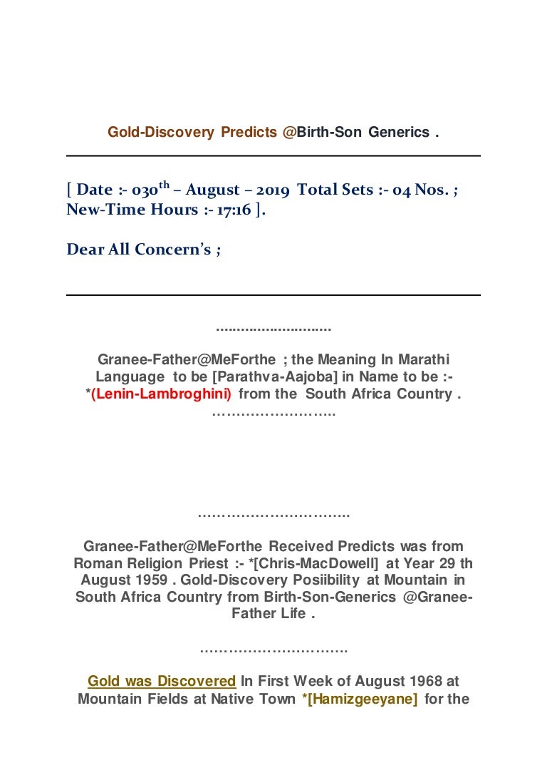 Gold Discovery Predicts Birth Son Generics