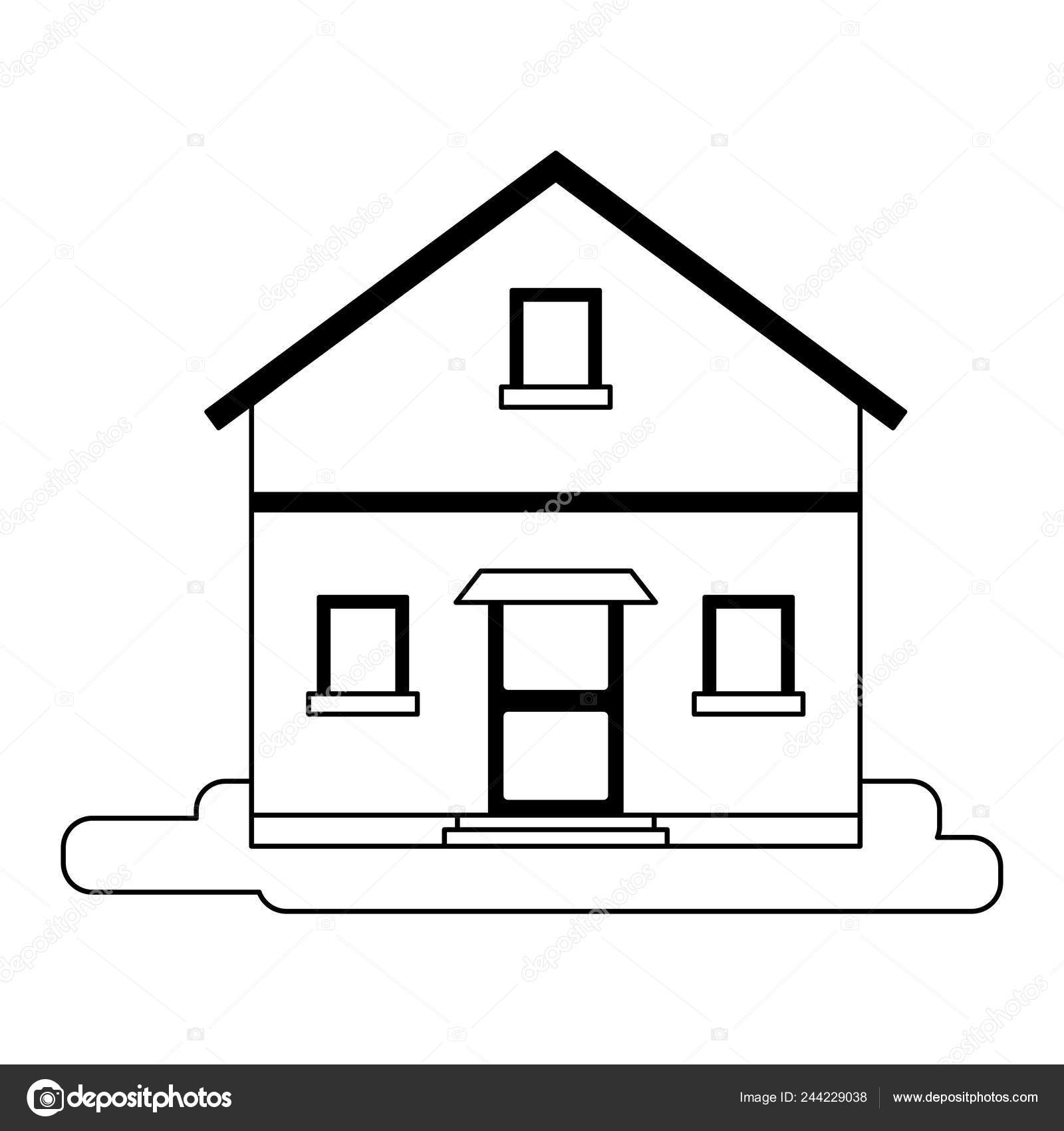 House Real Estate Cartoon Isolated Black And White Stock Vector